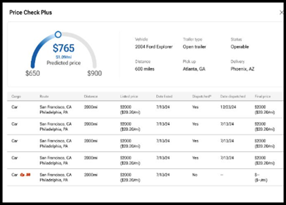 - For a shipper: choose a price closer to the upper or lower bands depending on how fast you need the vehicle to move.