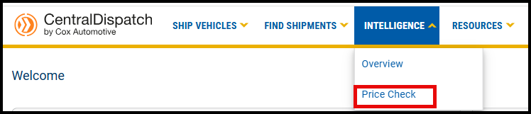 When accessing Price Check from the drop down on the Intelligence tab: