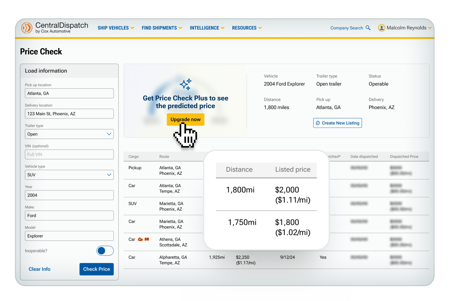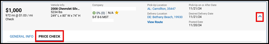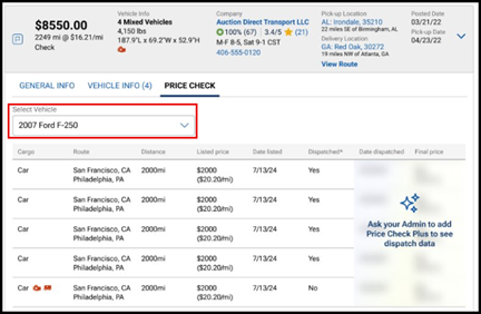 When searching for vehicles on the Search Vehicles page, click on the drop down on the dispatch card and the Price Check