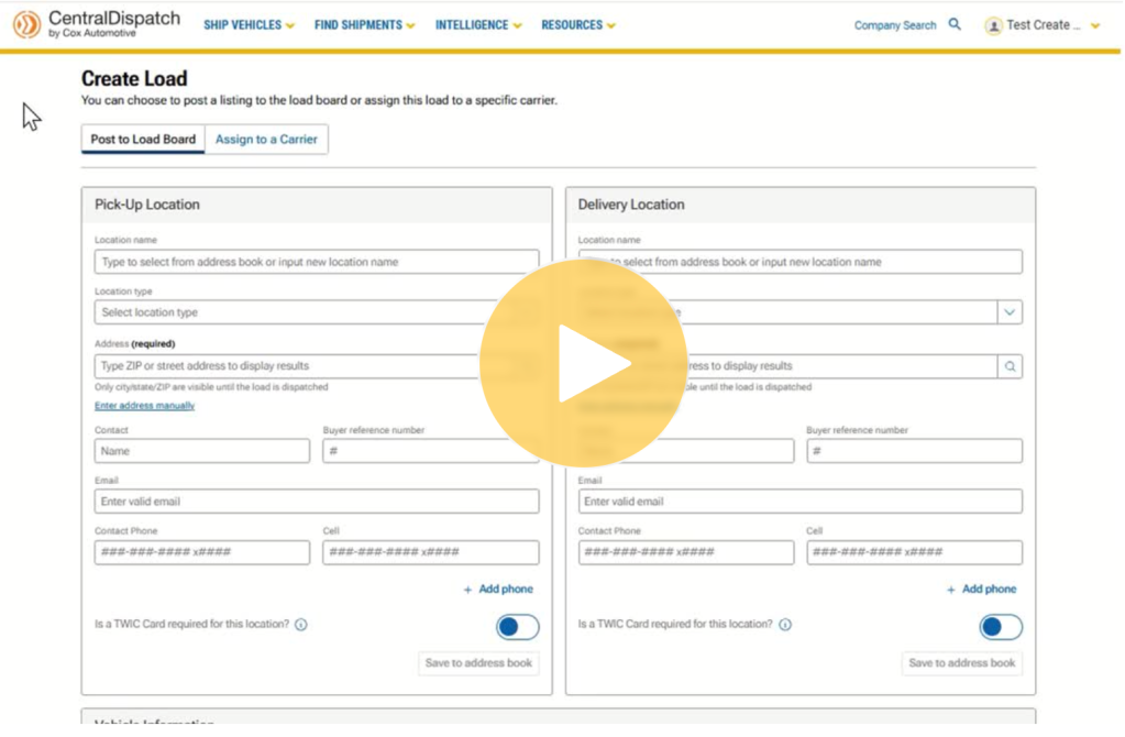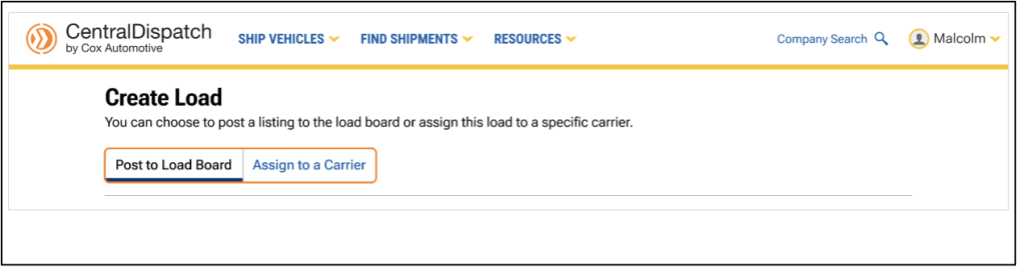 Shippers can Create Load and then choose to assign directly to a carrier or post the load to the board.