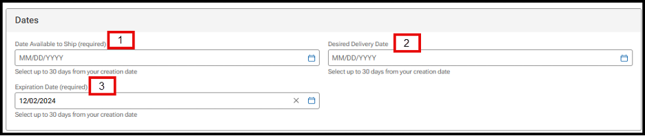 - Date Available to Ship: Required field. Use the calendar icon to select the date the vehicle will be available. Users can select up to 30 days from the listing date