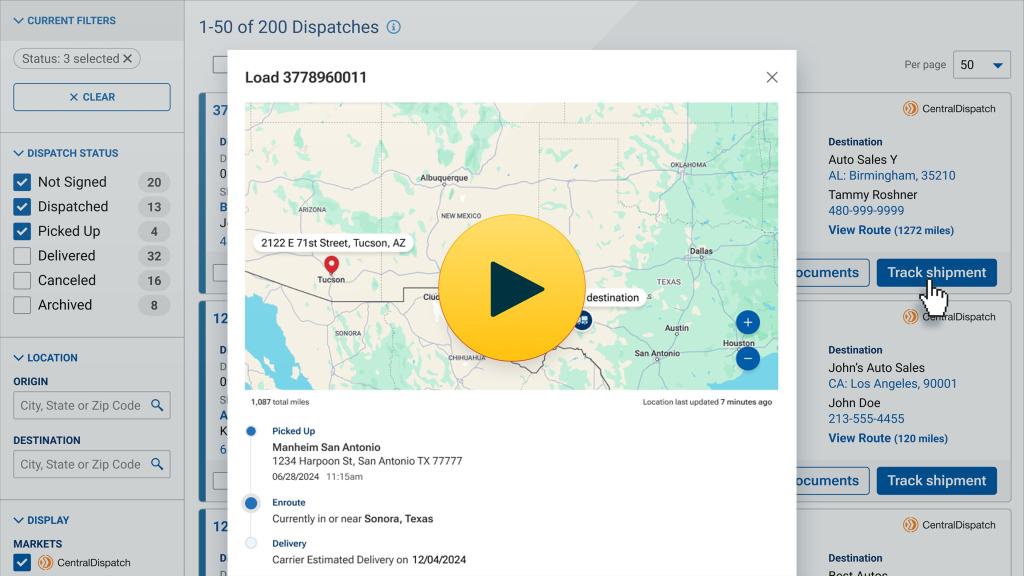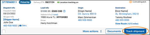 - Delivery tracking is automatically enabled after completion of a pickup inspection on the Central Dispatch Mobile App