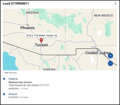 • Location data will only be available for the shipper account that is managing the vehicle’s transportation